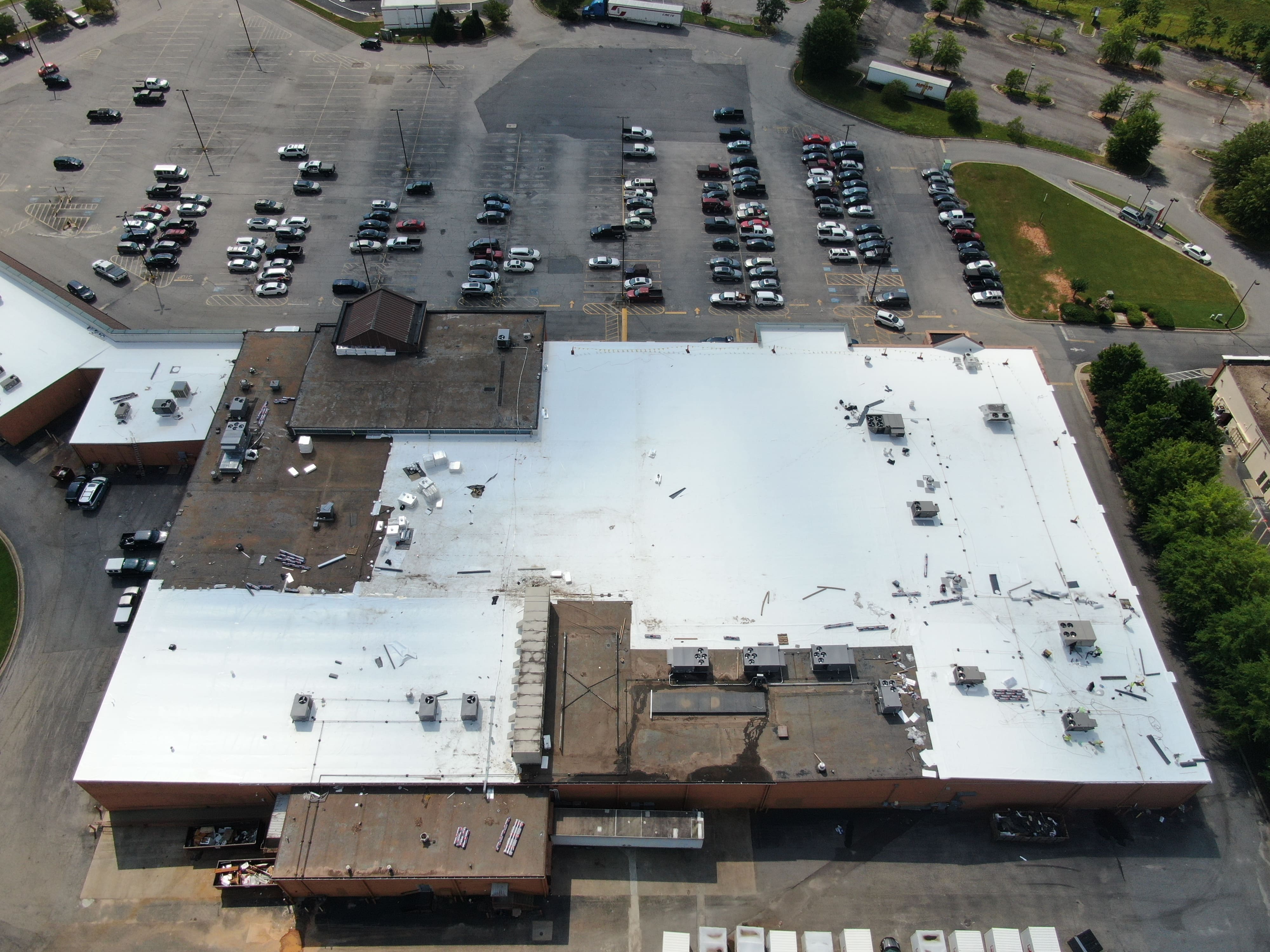 This roofing scope involved removing outdated materials on existing structures and installing a fully adhered single-ply system across several newly built industrial buildings. The result is a clean, high-performance commercial roof engineered for exceptional thermal performance, water resistance, and structural integrity — ideal for a high-volume manufacturing operation like Precision Manufacturing.
